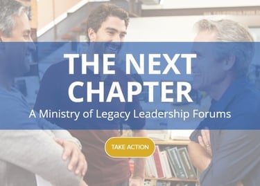 Digital Case Study of 4 web pages and digital flyers designed to introduce the new Next Chapter Forum hosted by Legacy Leadership Forums.