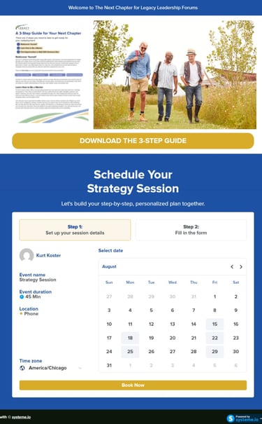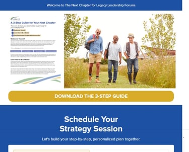In spring 2025, Legacy Leadership Forums—a Christian nonprofit client of mine since 2015—commissioned me to design a series of webpages promoting their new “Next Chapter” Forum, aimed at Christian businessmen preparing for retirement.
